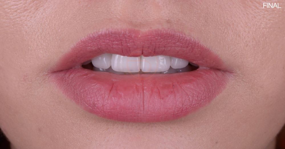 Transformarea a început cu o preparare (remodelare) atentă a dinților frontali, deschizând calea pentru aplicarea fațetelor dentare ceramice, iar pacienta noastră se bucura acum de un zâmbet captivant și complet.