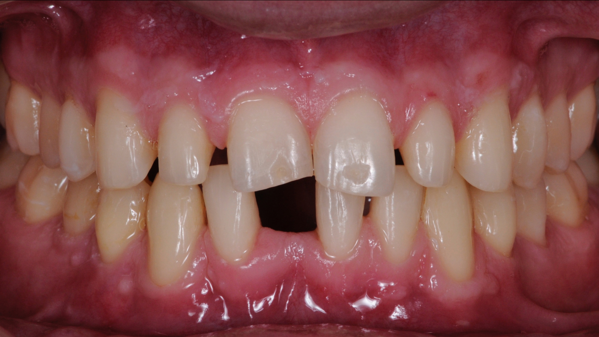 În situaţia de faţă, condiţiile au fost foarte bune pentru un tratament complet, minim-invaziv. S-au putut pune faţete dentare fără a șlefui dinții. Acest fapt s-a datorat în mare dimensiunilor dinţilor, dar şi spaţiilor existente între aceştia.