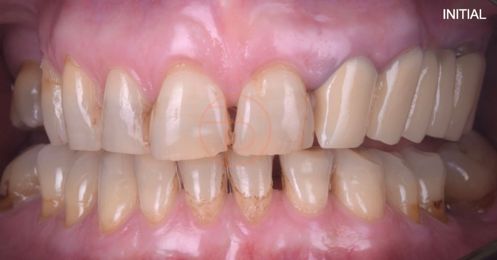 În prima fază, igienizarea dentară profesională și intervenția timpurie în tratamentul parodontozei, au eliminat cu succes posibilele riscuri. În acest caz specific, utilizarea coroanelor dentare integral ceramice a jucat un rol esențial nu doar în restabilirea unei ocluzii corecte (mușcăturii), ci și în redarea esteticii. Modul în care dinții se ating este crucial pentru menținerea sănătății dentare și asigurarea longevității coroanelor dentare.